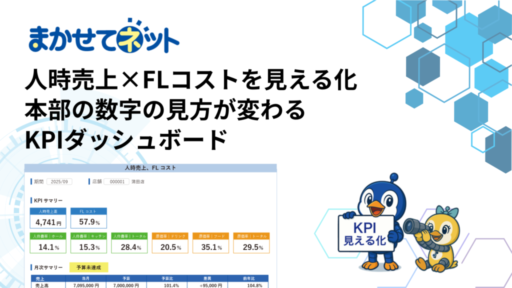全店舗の人時売上・FLコストを 一目で把握するための KPIダッシュボード